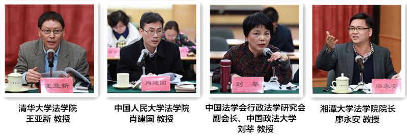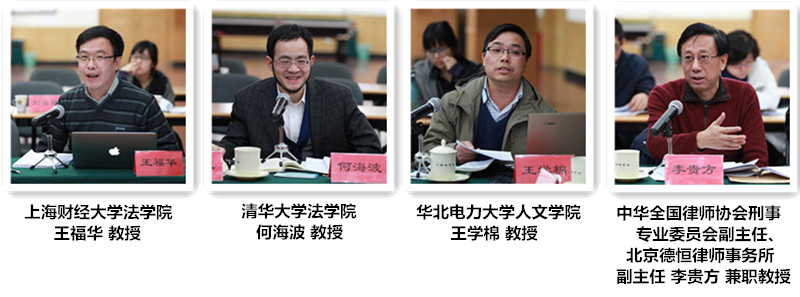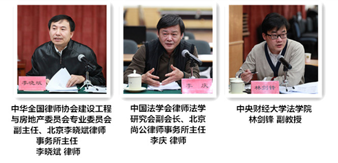 清华大学法学院王亚新教授,中国人民大学法学院肖建国教授,中国法学会行政法学研究会副会长、中国政法大学刘莘教授,湘潭大学法学院院长廖永安教授,上海财经大学法学院王福华教授,清华大学法学院何海波教授,华北电力大学人文学院王学棉教授,中华全国律师协会刑事专业委员会副主任、北京德恒律师事务所副主任李贵方兼职教授,中华全国律师协会建设工程与房地产委员会专业委员会副主任、北京李晓斌律师事务所主任李晓斌律师,中国法学会律师法学研究会副会长、北京尚公律师事务所主任李庆律师,中央财经大学法学院林剑锋副教授等专家学者参加了研讨会。