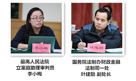 参加会议的还有最高人民法院立案庭助理审判员李小梅,国务院法制办财政金融法制司一处叶建勋副处长等。