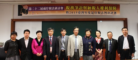 2015年4月27日,由台湾大学、高雄大学、财团法人资诚教育基金会、中华产业国际租税学会主办,《税务旬刊》杂志社和《会计研究月刊》杂志社协办的第二十二届海峡两岸财税法研讨会,在台湾大学法律学院霖泽馆隆重举行,来自两岸高校及政府机关和实务部门等200多名专家学者和财税实务人士出席了本次研讨会。本次研讨会共分开幕式、“2015台湾年度最佳税法判决评选”发布仪式、“税务争讼与纳税人权利保障”主题研讨和闭幕式四个阶段。开幕式由台湾大学法律学院院长谢铭洋教授主持,台湾财政部许虞哲常务次长、前司法院院长、著名行政法专家翁岳生教授和台湾资诚联合会计师事务所副所长暨策略长吴德丰先后致辞。“税务争讼与纳税人权利保障”主题研讨共分六个单元,先后在霖泽馆主会场和两个分会场举行。现将两岸学者的主要观点概述如下: